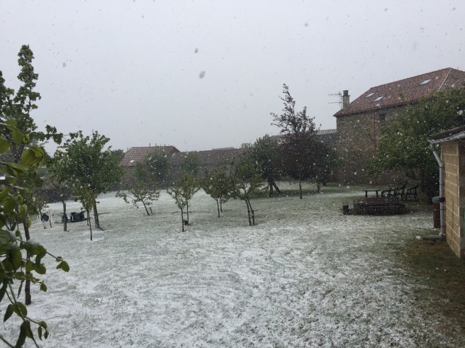 The winds came howling and the storm blew in. Even though Rabanal is in the foothills of the Montes de León this was a big surprise to all.