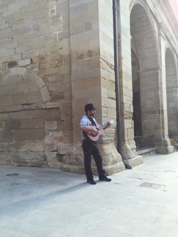 I was sitting out in the Los Arcos village square with my Canadian amigos (lovely sisters from BC and a couple from Ontario), drinking wine and relaxing when this guy appeared with his guitar and began singing and playing the most wonderful music.