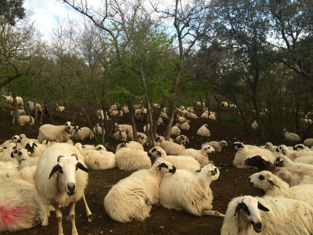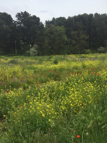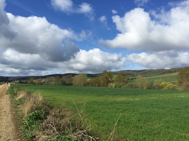 Another lovely walking day. I’m still in the agricultura area –  fields of wheat and peas instead of vineyards. And extra fun today was spying some stealthy truffle (?) hunters with their dogs, trowels and baskets.