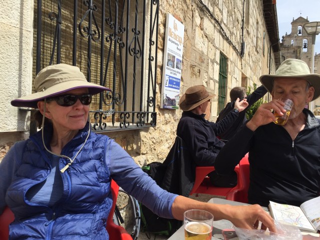 The path wound up and over the pine and oak laden Montes de Oca (though “mountains” is stretching it). Heading west, ash and juniper lined the path downhill until it was time for for a cerveza break in San Juan Ortega ( St John of the Nettle — why all this itching on the Camino?).