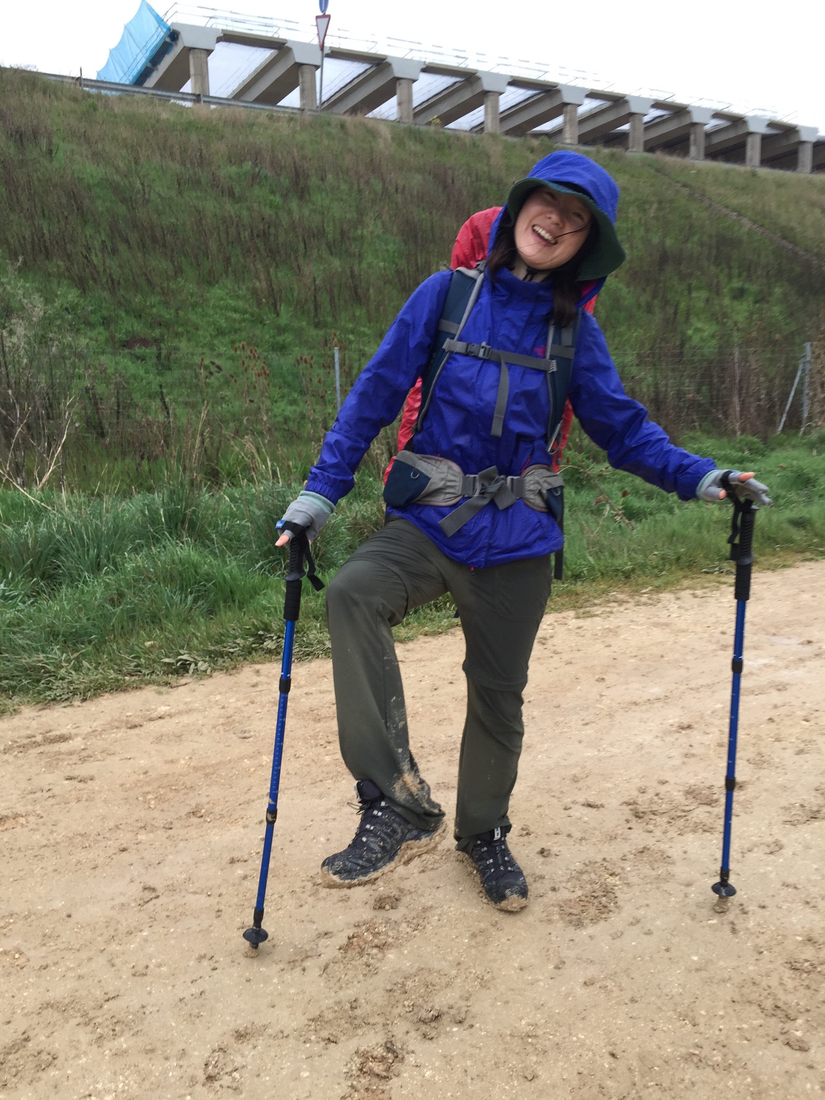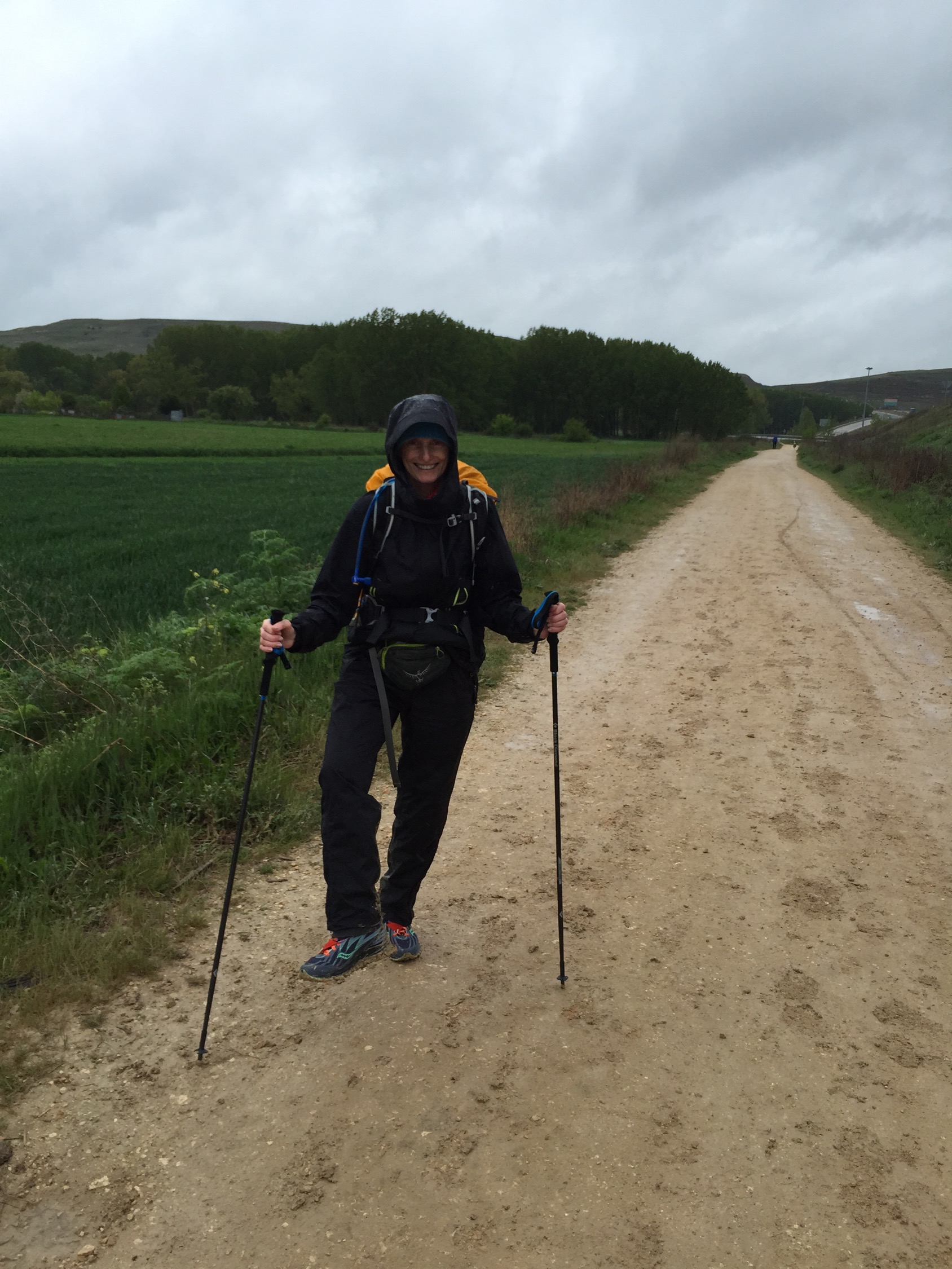 In the afternoon the winds picked up and the rains poured down just in time for a long uphill climb. So I tucked my poles under my arms, leaned into the wind and decided it was time to break out the headphones and play some inspirational music.
